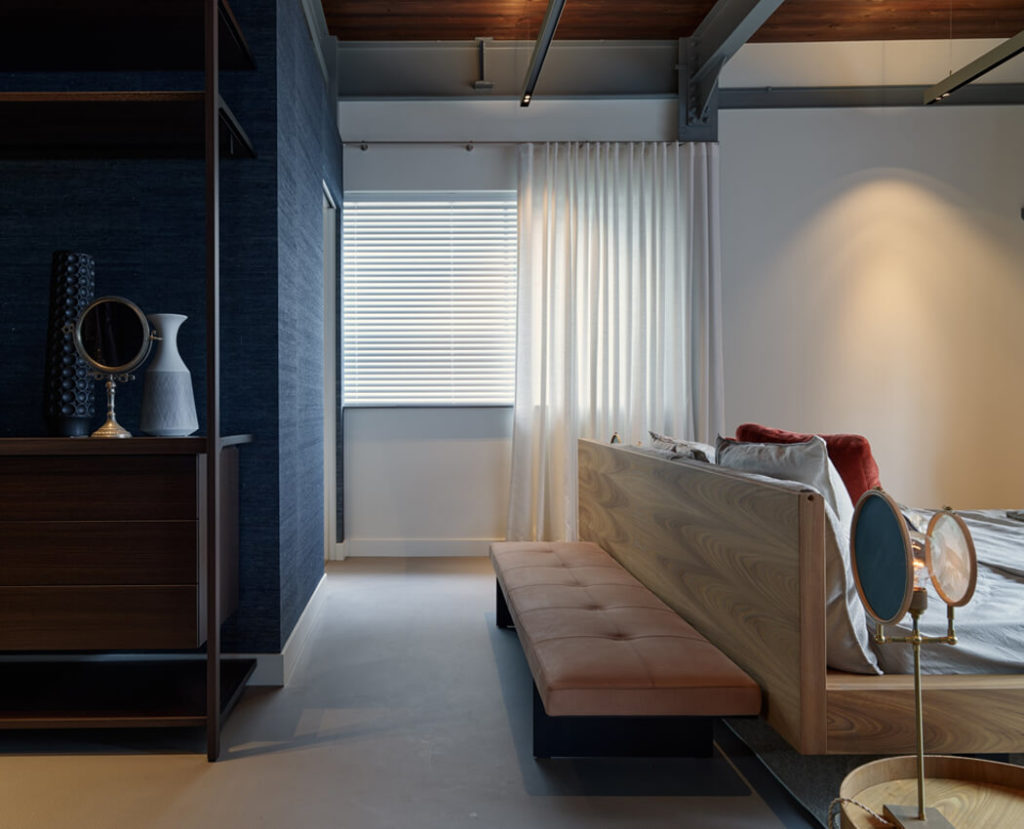 Om de industriële sfeer van het Riffelgebouw te behouden, is gekozen voor een zorgvuldig palet van materialen. Denk aan verfijnde houtsoorten, tactiele stoffen en rustige tinten die warmte toevoegen aan de robuuste basis. Luxe afwerkingen zorgen voor een hedendaags comfortniveau, terwijl het geheel zijn monumentale karakter behoudt.